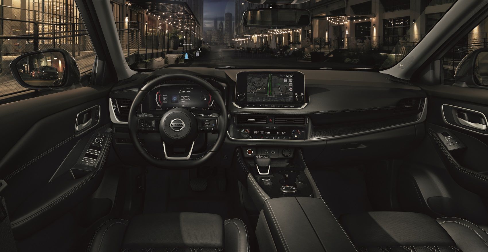 This feature combines lane tracing, cruise control, and traffic sign recognition with the navigation system to expertly maintain your Rogue in your lane and at the right speed. It can speed up, slow down, and turn your crossover according to the traffic conditions and the navigation instructions (under your supervision, of course).