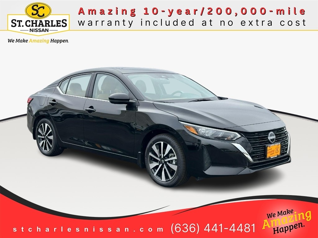 Super Black 2025 Nissan Sentra 4D Sedan SV FWD CVT with Xtronic 2.0L I4 DOHC 30/40 City/Highway MPG