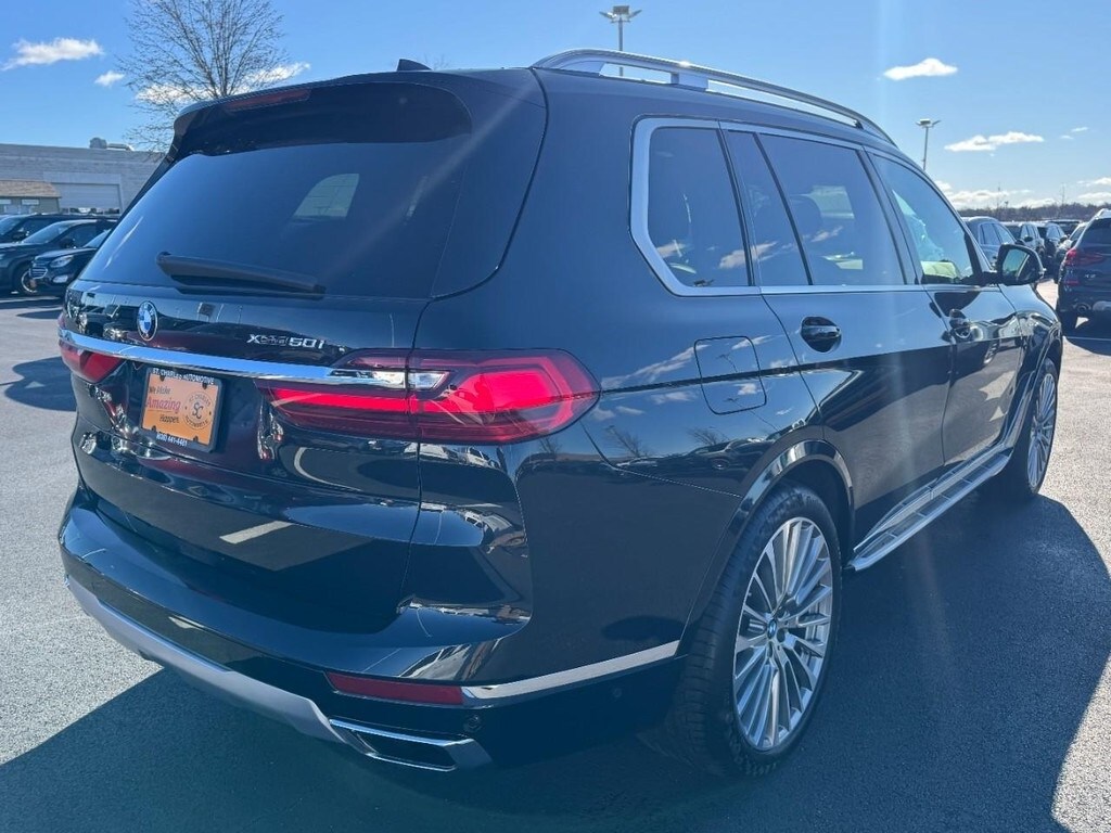 At St. Charles Nissan, the #1 volume Nissan dealership in Missouri for 2024, youâll find the largest selection of new and used cars for sale near youâ"with best prices, fast financing, and top trade-in values. This X7 xDrive50i is nicely equipped with Cold Weather Package (5-Zone Automatic Climate Control, Front & Rear Heated Seats, and Heated Front Seats Armrests & Steering Wheel), Luxury Seating Package (Front Massaging Seats and Front Ventilated Seats), Premium Package (Gesture Control, Heated & Cooled Cup Holders, Rear Electric Side Window Shades, Remote Engine Start, and Soft-Close Automatic Doors), 16 Speakers, 3.39 Axle Ratio, 3rd row seats: split-bench, 4-Wheel Disc Brakes, ABS brakes, Air Conditioning, Alloy wheels, Aluminum Running Boards, AM/FM radio: SiriusXM, AM/FM Stereo, Apple CarPlay, Apple CarPlay Compatibility, Auto High-beam Headlights, Auto tilt-away steering wheel, Auto-dimming door mirrors, Auto-dimming Rear-View mirror, Auto-leveling suspension, Automatic temperature control, Brake assist, Bumpers: body-color, Compass, Delay-off headlights, Driver door bin, Driver vanity mirror, Dual front impact airbags, Dual front side impact airbags, Electronic Stability Control, Emergency communication system: BMW Assist eCall, Four wheel independent suspension, Front anti-roll bar, Front Bucket Seats, Front Center Armrest, Front dual zone A/C, Front fog lights, Front reading lights, Fully automatic headlights, Garage door transmitter, Genuine wood console insert, Genuine wood dashboard insert, Genuine wood door panel insert, harman/kardon Surround Sound System, harman/kardon® Speakers, Head restraints memory, Head-Up Display, Heads-Up Display, Heated door mirrors, Heated Front Seats, Heated front seats, Illuminated entry, Knee airbag, Leather Shift Knob, Low tire pressure warning, Memory seat, Multi-Contour Seats, Navigation System, Occupant sensing airbag, Outside temperature display, Overhead airbag, Panic alarm, Passenger door bin, Passenger vanity mirror, Power adjustable front head restraints, Power door mirrors, Power driver seat, Power Front Seats, Power moonroof, Power passenger seat, Power steering, Power windows, Radio data system, Rain sensing wipers, Rear air conditioning, Rear anti-roll bar, Rear dual zone A/C, Rear reading lights, Rear seat center armre