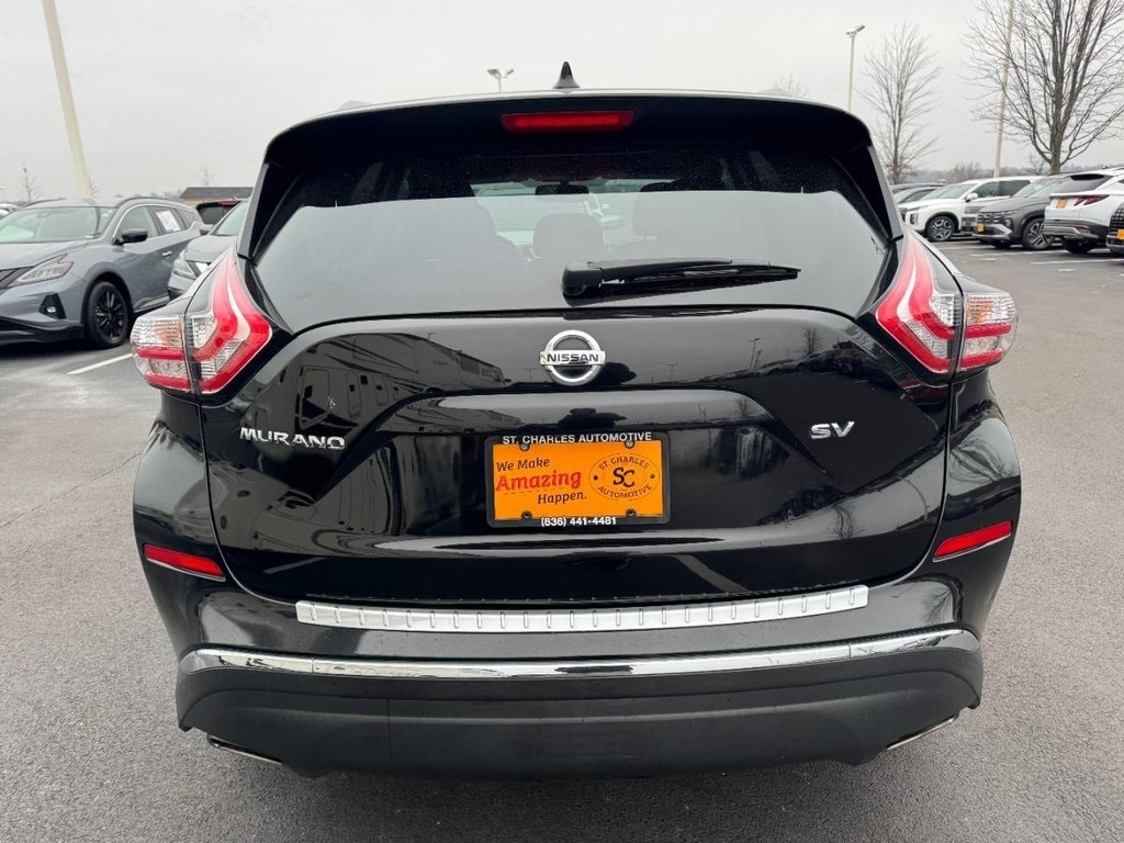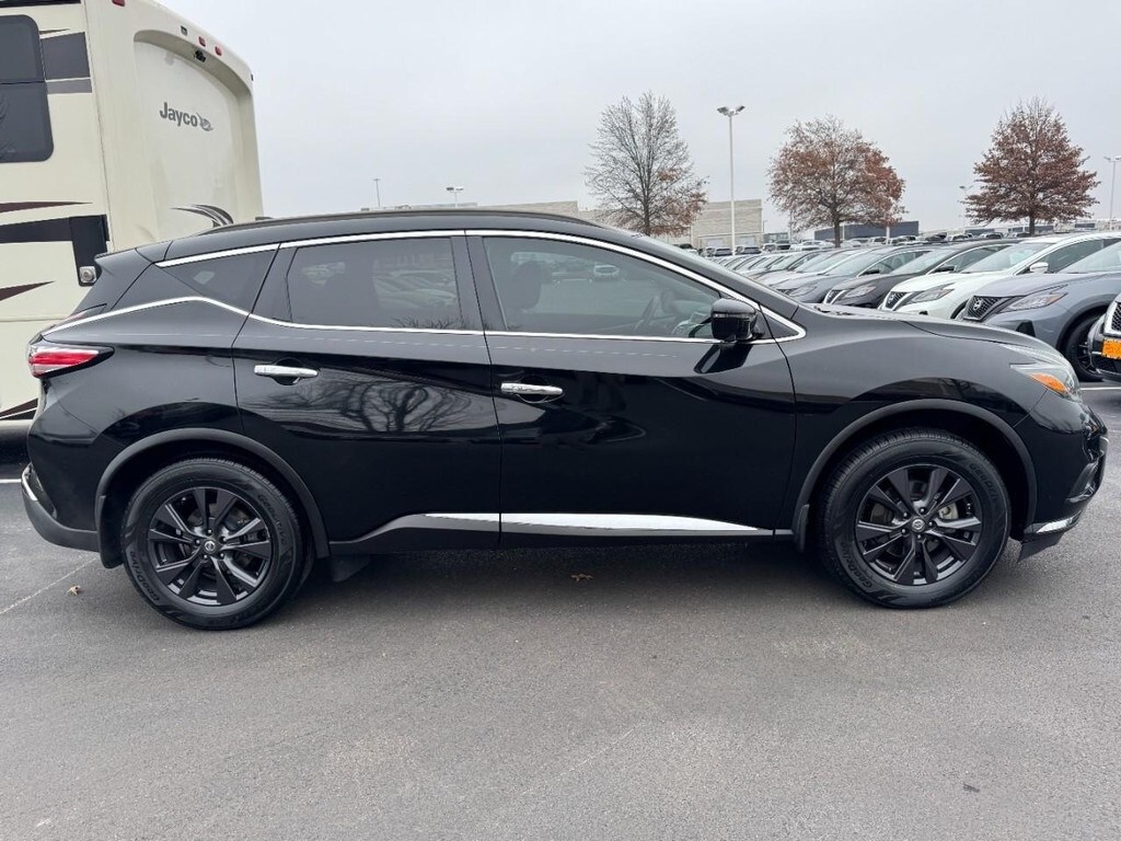 At St. Charles Nissan, the #1 volume Nissan dealership in Missouri for 2024, youâll find the largest selection of new and used cars for sale near youâ"with best prices, fast financing, and top trade-in values. This Murano SV is nicely equipped with Premium Package (BOSE Premium Audio System w/11 Speakers, Heated Front Bucket Seats, Heated Outside Mirrors, Intelligent Around View Monitor, Intelligent Cruise Control, Intelligent Drive Alertness (I-DA), and Wheels: 18" Gunmetal Aluminum-Alloy), CVT with Xtronic, 4-Wheel Disc Brakes, 4.667 Axle Ratio, 6 Speakers, ABS brakes, Air Conditioning, Alloy wheels, AM/FM radio: SiriusXM, AM/FM/CD/MP3/WMA Audio System, Apple CarPlay/Android Auto, Auto-dimming Rear-View mirror, Automatic temperature control, Blind Spot Warning, Brake assist, Bumpers: body-color, Carpeted Floor Mats & Carpeted Cargo Mat, CD player, Child-Seat-Sensing Airbag, Cloth Seat Trim, Delay-off headlights, Driver door bin, Driver vanity mirror, Dual front impact airbags, Dual front side impact airbags, Electronic Stability Control, Four wheel independent suspension, Front anti-roll bar, Front Bucket Seats, Front Center Armrest, Front dual zone A/C, Front fog lights, Front reading lights, Fully automatic headlights, Garage door transmitter: HomeLink, Illuminated entry, Knee airbag, Leather Shift Knob, Low tire pressure warning, Navigation System, Occupant sensing airbag, Outside temperature display, Overhead airbag, Overhead console, Panic alarm, Passenger door bin, Passenger vanity mirror, Power door mirrors, Power driver seat, Power passenger seat, Power steering, Power windows, Radio data system, Rear anti-roll bar, Rear Bumper Protector, Rear reading lights, Rear seat center armrest, Rear window defroster, Rear window wiper, Remote keyless entry, Roof rack: rails only, Security system, Speed control, Speed-sensing steering, Speed-Sensitive Wipers, Splash Guards, Split folding rear seat, Spoiler, Steering wheel mounted audio controls, Tachometer, Telescoping steering wheel, Tilt steering wheel, Traction control, Trip computer, Turn signal indicator mirrors, Variably intermittent wipers, and Wheels: 18" Machined Aluminum-Alloy.