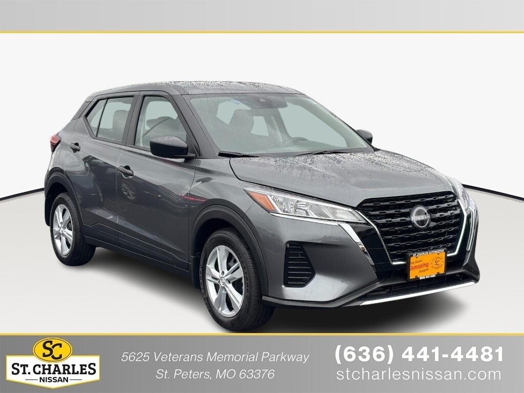 At St. Charles Nissan, the #1 volume Nissan dealership in Missouri for 2024, youâll find the largest selection of new and used cars for sale near youâ"with best prices, fast financing, and top trade-in values. This Kicks Play S is nicely equipped with 6 Speakers, ABS brakes, Air Conditioning, AM/FM radio, Auto High-beam Headlights, Blind Spot Warning, Brake assist, Driver door bin, Driver vanity mirror, Driver's Seat Mounted Armrest, Dual front impact airbags, Dual front side impact airbags, Electronic Stability Control, Front anti-roll bar, Front Bucket Seats, Front reading lights, Front wheel independent suspension, Fully automatic headlights, Illuminated entry, Knee airbag, Low tire pressure warning, Occupant sensing airbag, Outside temperature display, Overhead airbag, Panic alarm, Passenger door bin, Passenger vanity mirror, Power door mirrors, Power steering, Power windows, Radio data system, Rear Parking Sensors, Rear reading lights, Rear side impact airbag, Rear window defroster, Rear window wiper, Remote keyless entry, Speed control, Split folding rear seat, Sport steering wheel, Steering wheel mounted audio controls, Tachometer, Telescoping steering wheel, Tilt steering wheel, Traction control, Trip computer, and Variably intermittent wipers.