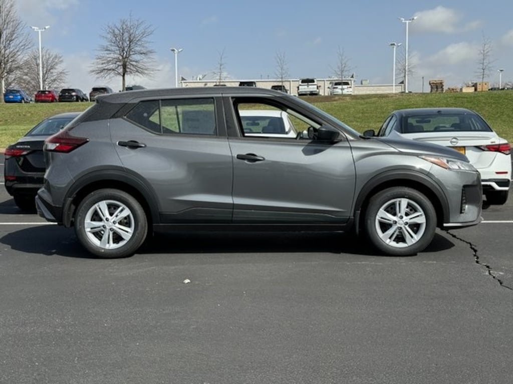 At St. Charles Nissan, the #1 volume Nissan dealership in Missouri for 2024, youâll find the largest selection of new and used cars for sale near youâ"with best prices, fast financing, and top trade-in values. This Kicks Play S is nicely equipped with Nissan Certified Certified, 16" Steel Wheels with Full Covers, 6 Speakers, ABS brakes, Air Conditioning, AM/FM Audio System, AM/FM radio, Apple CarPlay/Android Auto, Auto High-beam Headlights, Blind Spot Warning, Brake assist, Bumpers: body-color, Carpeted Floor Mats with Cargo Mat, Center Armrest with Storage, Cloth Seat Trim with Single Stitch, Driver door bin, Driver vanity mirror, Driver's Seat Mounted Armrest, Dual front impact airbags, Dual front side impact airbags, Electronic Stability Control, Front anti-roll bar, Front Bucket Seats, Front reading lights, Front wheel independent suspension, Fully automatic headlights, Illuminated entry, Knee airbag, Low tire pressure warning, Occupant sensing airbag, Outside temperature display, Overhead airbag, Panic alarm, Passenger door bin, Passenger vanity mirror, Power door mirrors, Power steering, Power windows, Radio data system, Rear Parking Sensors, Rear reading lights, Rear side impact airbag, Rear window defroster, Rear window wiper, Remote keyless entry, Speed control, Splash Guards Grain (4 Piece), Split folding rear seat, Sport steering wheel, Steering wheel mounted audio controls, Tachometer, Telescoping steering wheel, Tilt steering wheel, Traction control, Trip computer, and Variably intermittent wipers.