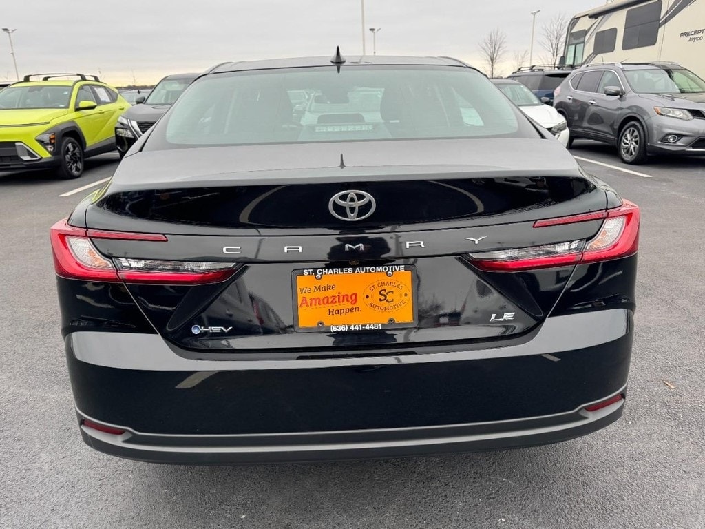 At St. Charles Nissan, the #1 volume Nissan dealership in Missouri for 2024, youâll find the largest selection of new and used cars for sale near youâ"with best prices, fast financing, and top trade-in values. This Camry LE is nicely equipped with 2.5L 4-Cylinder 16V DOHC, Black w/Fabric Seat Trim, ABS brakes, Active Cruise Control, Alloy wheels, Electronic Stability Control, Front dual zone A/C, Heated door mirrors, Illuminated entry, Low tire pressure warning, Remote keyless entry, Traction control, 4-Wheel Disc Brakes, 6 Speakers, Air Conditioning, AM/FM radio: SiriusXM, Apple CarPlay/Android Auto, Auto High-beam Headlights, Automatic temperature control, Brake assist, Bumpers: body-color, Delay-off headlights, Driver door bin, Driver vanity mirror, Dual front impact airbags, Dual front side impact airbags, Emergency communication system: Safety Connect (up to 10-year trial subscription), Exterior Parking Camera Rear, Fabric Seat Trim, Four wheel independent suspension, Front anti-roll bar, Front Bucket Seats, Front Center Armrest, Front reading lights, Fully automatic headlights, Knee airbag, Occupant sensing airbag, Outside temperature display, Overhead airbag, Overhead console, Panic alarm, Passenger door bin, Passenger vanity mirror, Power door mirrors, Power steering, Power windows, Radio data system, Radio: Toyota Audio Multimedia w/8" Touchscreen, Rear anti-roll bar, Rear seat center armrest, Rear side impact airbag, Rear window defroster, Security system, Speed control, Speed-sensing steering, Split folding rear seat, Steering wheel mounted audio controls, Telescoping steering wheel, Tilt steering wheel, Trip computer, Turn signal indicator mirrors, Variably intermittent wipers, and Wheels: 16" Silver-Finished Alloy.